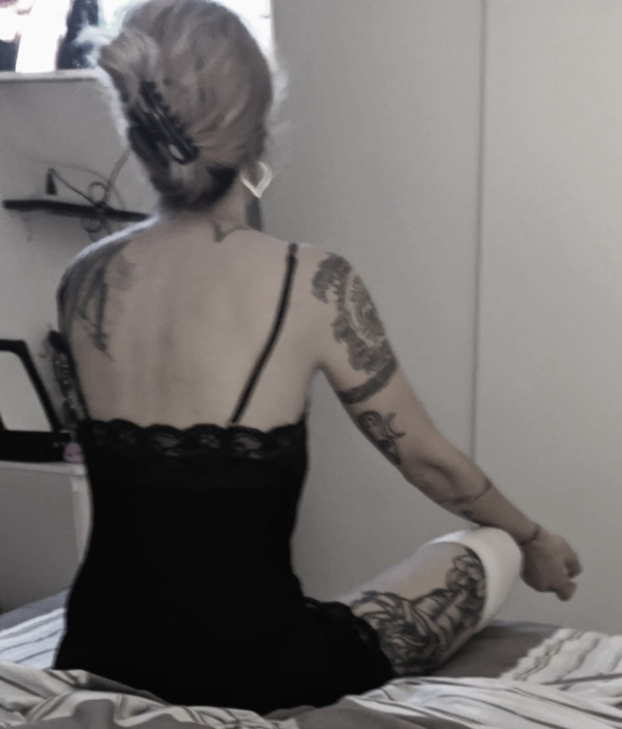 📸 infatti eccomi qui, in questa foto rubata da mio marito questa estate, in tutto il mio superbo splendore 🤣 mollettone nei capelli, camicia da notte e fascia sul ginocchio (stavo combattendo con un’infiammazione del tendine rotuleo, una vera goduria!)… ma ci credi che per me in quel momento NON ESISTE NESSUNO AL DI FUORI DI ME?